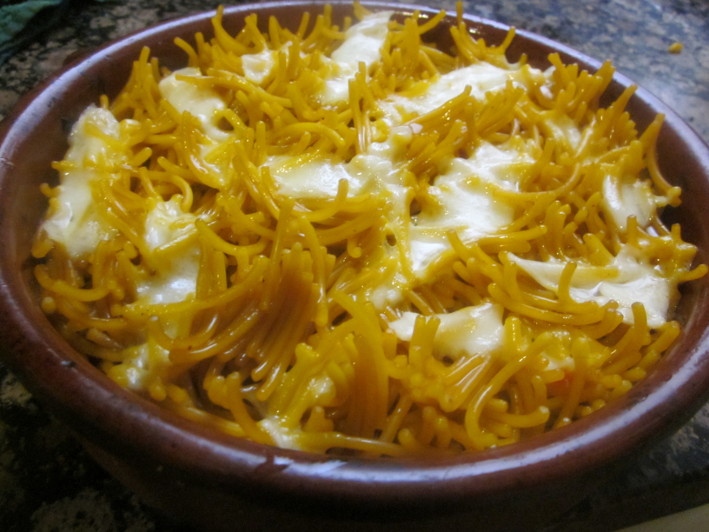 Com ja he dit en el capítol dedicat a l’arròs, n’hi ha molts que diuen que en les coses cuites amb brou de carn no s’hi ha de posar ni sucre ni llet, però tot depèn de l’apetit del senyor o de qui cuina. Amb els fideus cuinats amb brou de carn convé molt posar-hi un bon formatge d’Aragó fi i ben ratllat.